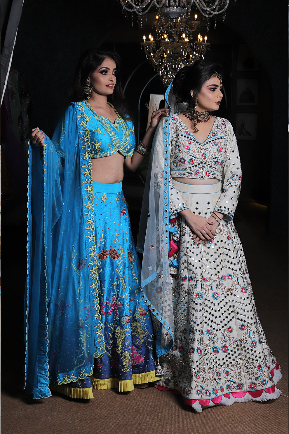 Ivory & Blue Hand-Embroidered Lehenga Set